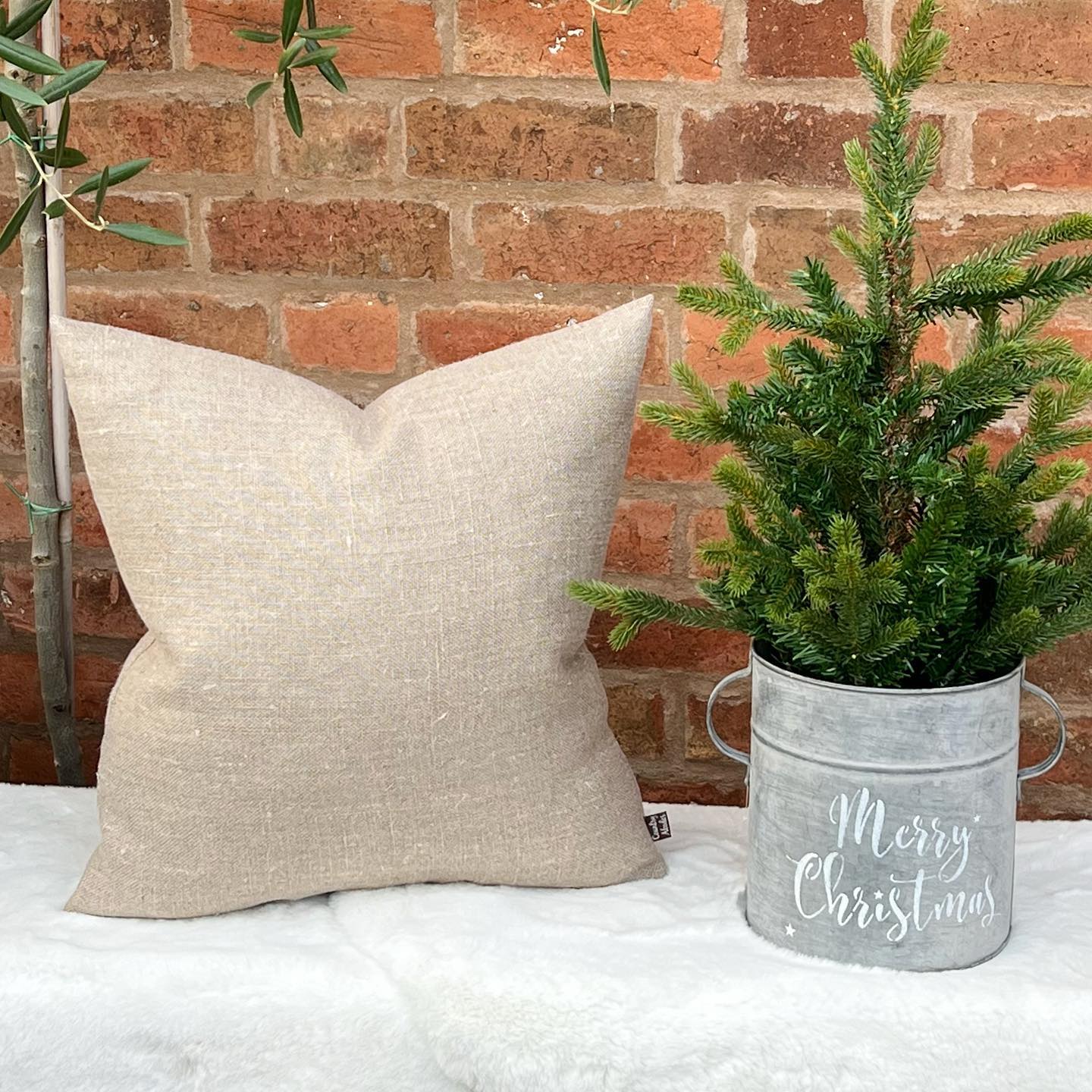 Hessian Style cushion, made from the softest, beautiful Romo Hessian fabric, on the front and back, with a hidden zipper fastening.
