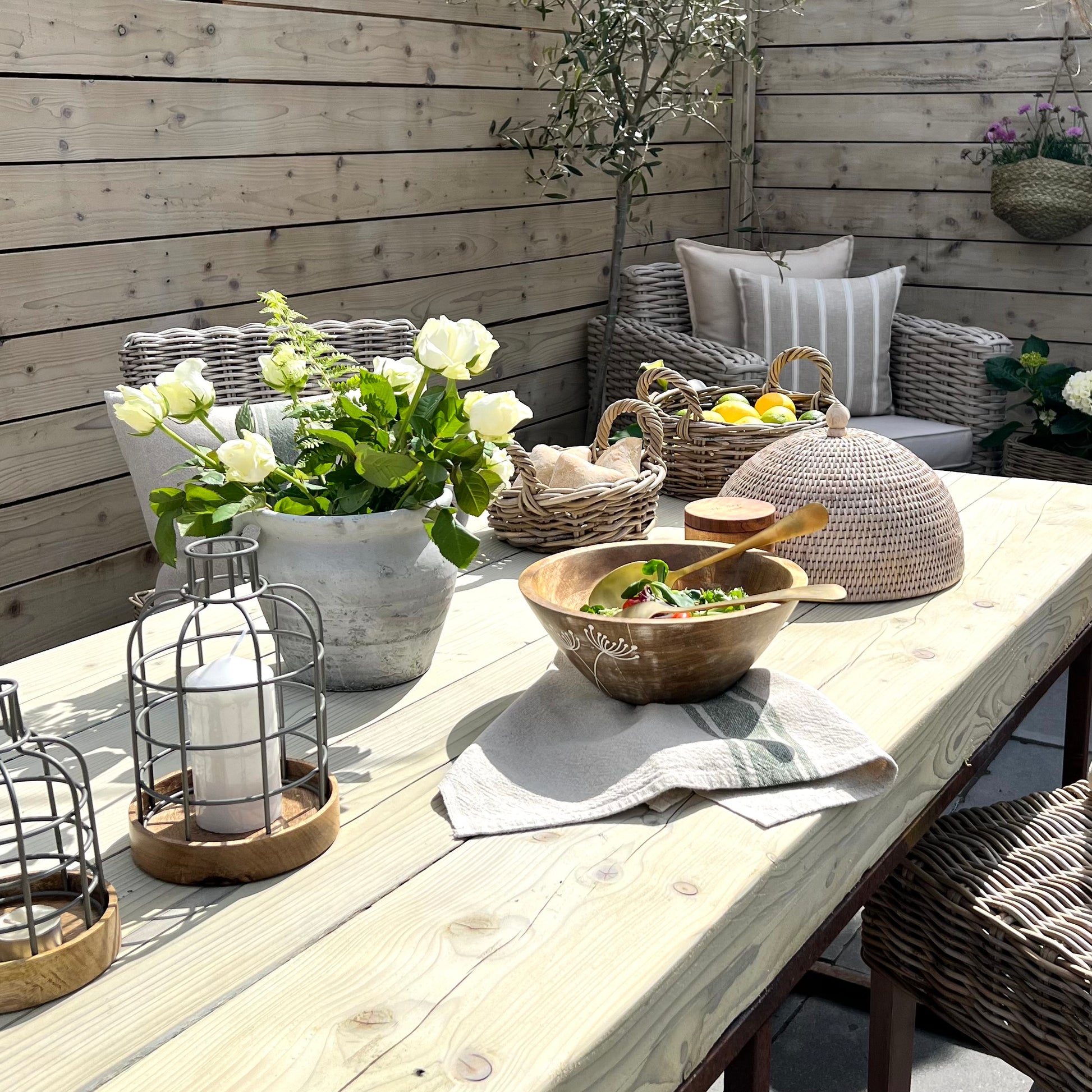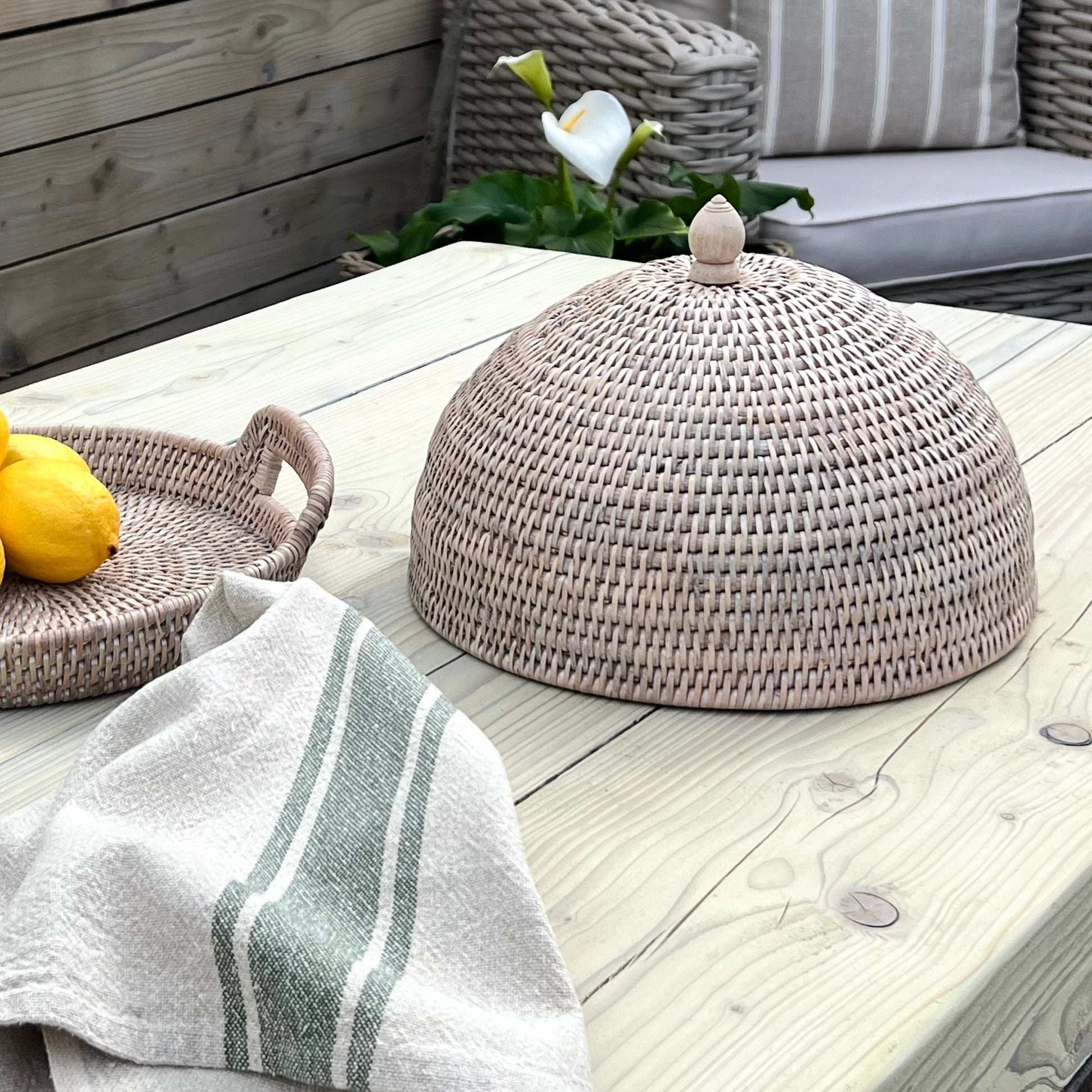 Rattan Food Dome, beautifully hand made in white washed rattan.
