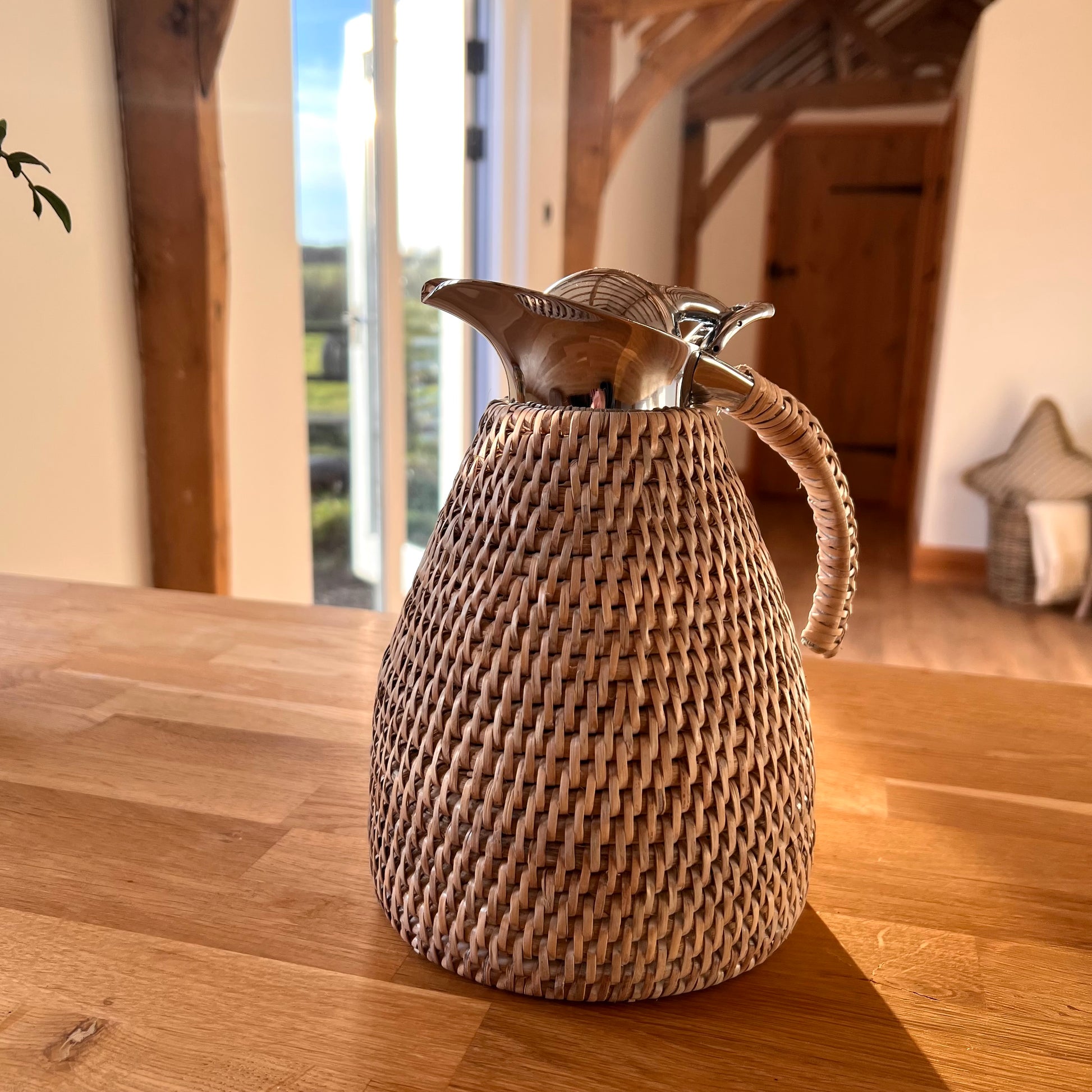 Stylish Rattan Thermos, made in a natural whitewashed rattan which have bee sustainably sourced.