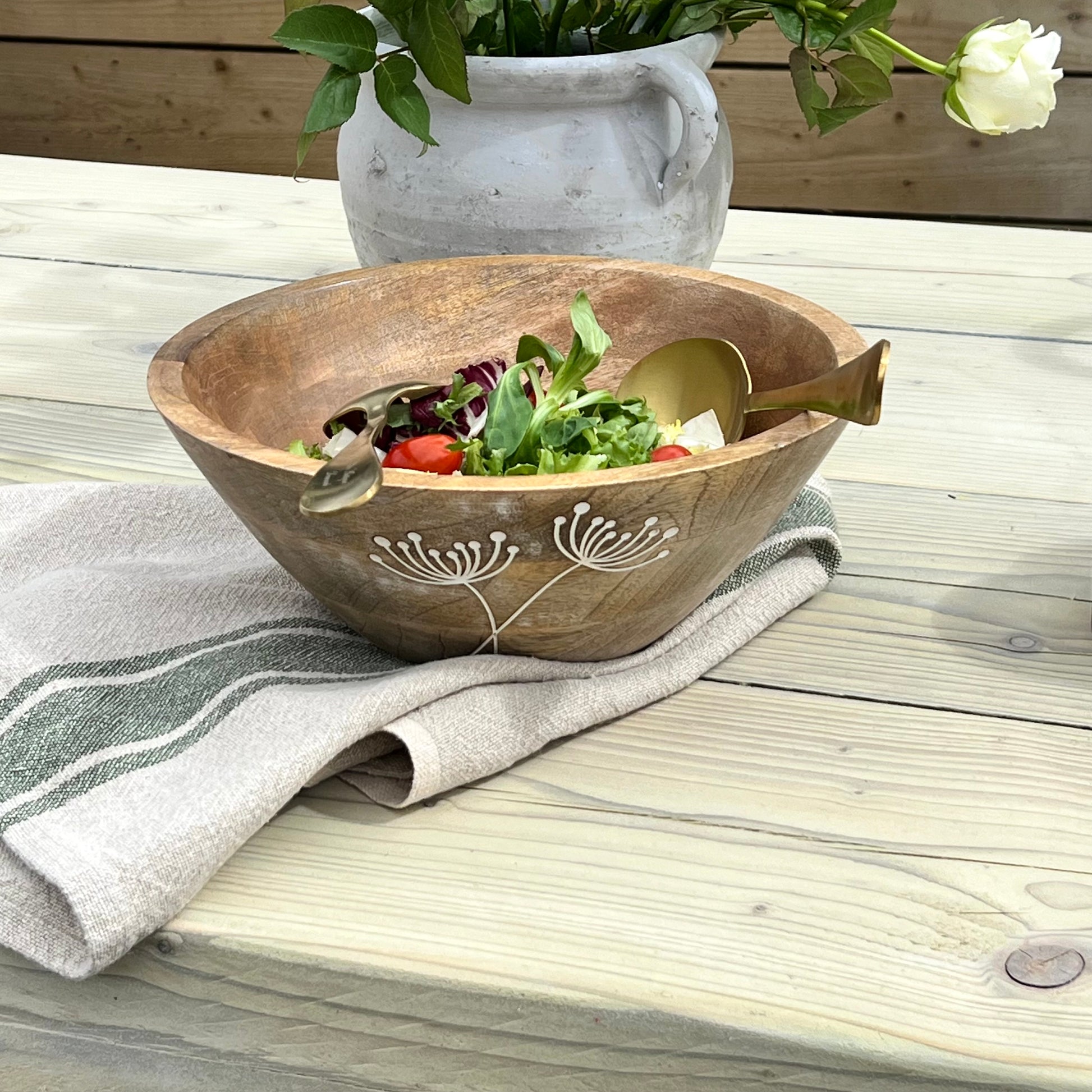 Wooden Carved Salad Bowl, made in a lovely wood, with pretty carving.